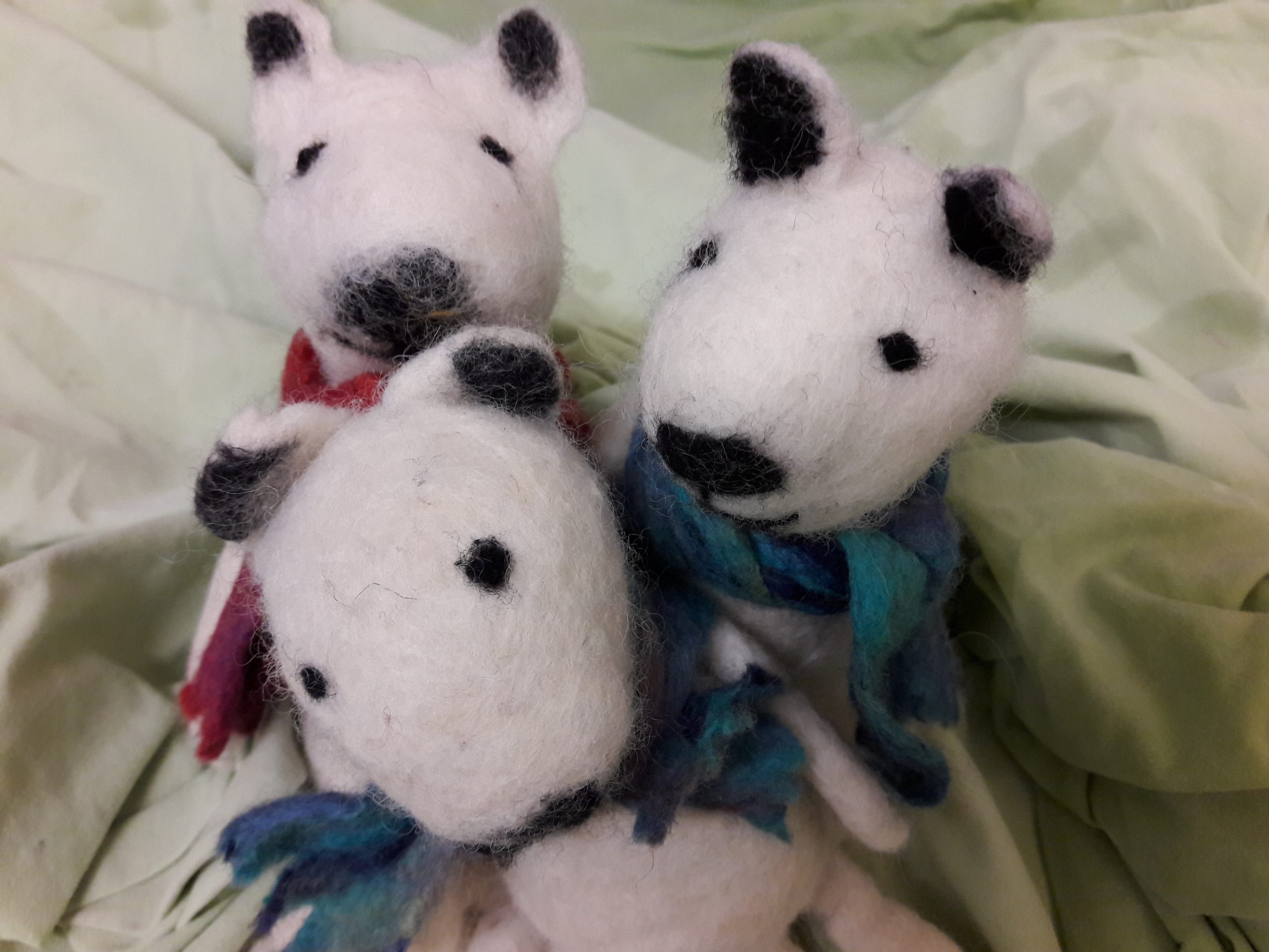 Wir filzen allerlei Winterliches aus ungesponnener Wolle vom Schaf – einem Stoff, der sich mit ein wenig Geschick und Geduld auf vielfältige Weise gestalten lässt: Bären, Wichtelmänner