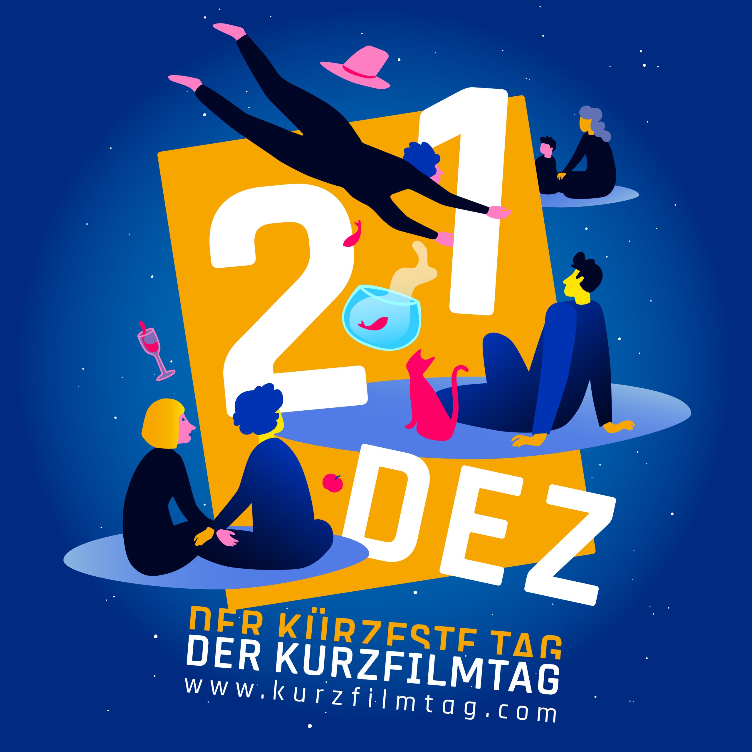 Kurzfilme in der WG-Küche, Kurzfilme auf einer Waldlichtung, Kurzfilme auf dem Weihnachtsmarkt: Einmal im Jahr, am 21. Dezember, verwandeln sich landauf, landab die unterschiedlichsten Orte in temporäre Kinos. Dort, aber auch in vielen echten Kinos bestimmt dann das kurze Format den Spielplan. Über 25.000 Zuschauer*innen machen sich am kürzesten Tag des Jahres zwischen Husum und Konstanz auf den Weg, um auf professioneller oder improvisierter Leinwand in kurzfilmische Welten einzutauchen. Daneben locken am 21. Dezember auch Fernsehen und Internet mit kurzen Streifen aller Couleur. Öffentliche Einrichtungen, Vereine, Unternehmen, Privatpersonen und natürlich Kinos sind dabei, wenn ein breites Publikum den Kurzfilm in all seinen Facetten feiert: als Einstieg in die Filmwelt für den Nachwuchs, als Kabinettstück gestandener Filmemacher*innen, als Spielwiese für Experimentierfreudige. Gleichzeitig wird mit dem KURZFILMTAG auf die hohe Kreativität und Produktivität der deutschen Kurzfilmszene aufmerksam gemacht.